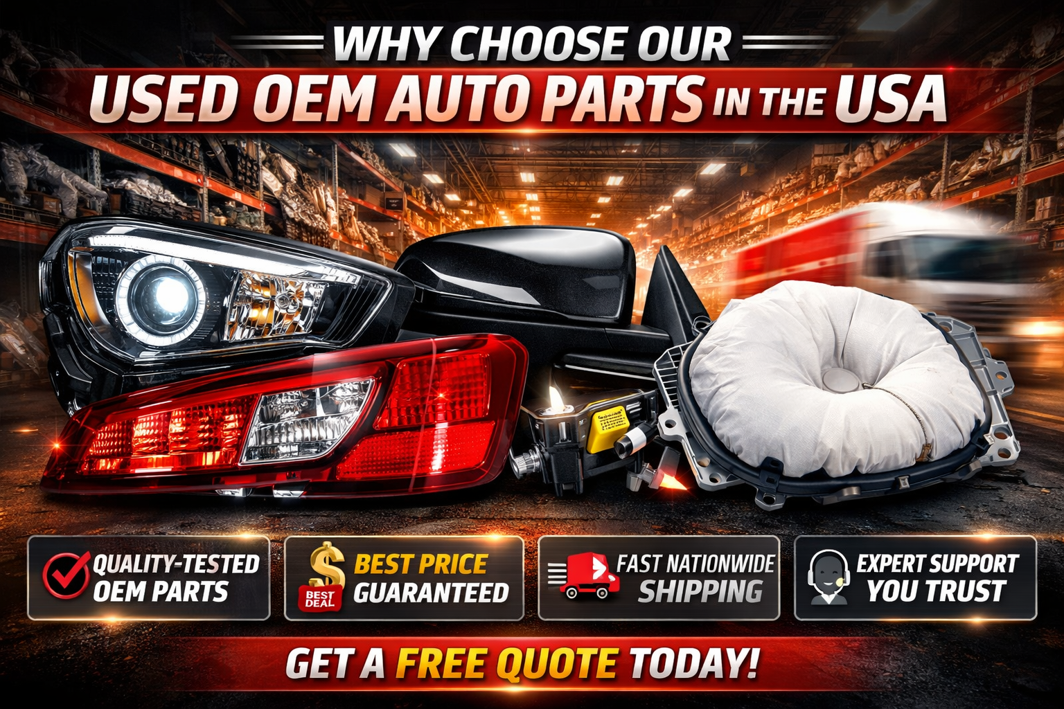 Buy trusted used OEM auto parts in the USA with confidence. We specialize in OEM headlights, tail lights, mirrors, and airbags, all quality-tested for perfect fit and safety. Get factory-original parts at competitive prices, fast nationwide shipping, and expert support—request your free quote today.
